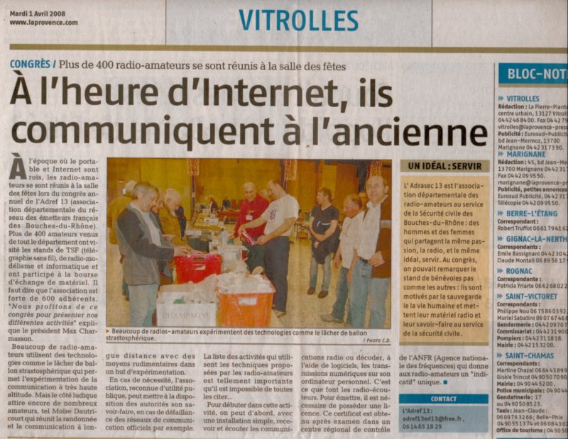 C’est le samedi 29 mars 2008 que s’est tenu le congrès de Vitrolles. malgré deux autres salons dans le grand sud le même jour, le succès fut au rendez vous.
