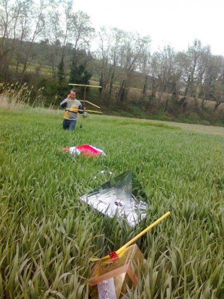 Evidemment, c’est bien connu, les émotions … çà creuse et le repas fut pris en commun pour ceux et celles qui sont restés. A 13h, la nacelle était au sol et l’équipe composée de F6DHI, F4ESK et F0GHU, postée sur une colline sur les hauteurs de Jouques (13) ont pu enregistrer les images ATV presque jusqu’au bout ! L’altitude était alors de 500m lorsque l’écran de télévision est totalement devenu noir … Les détails du sol étaient alors fort interressants … Nos amis ont pu également entendre la balise sur 144,090 au 40° , la nacelle étant au sol . Mieux, grâce à une 9 éléments perchée à 7 m du sol, le décodage APRS était encore possible et c’est ainsi que la position exacte de la nacelle a pu être transmise aux quatres équipes de recherche sur le terrain.
