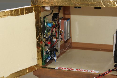Partie vidéo avec un émetteur comtech 2,3 Ghz + ampli 2W (made in F1LVO) . Petite carte de gestion automatique des 2 caméras inférieure et supérieure.