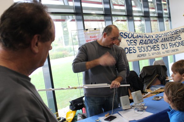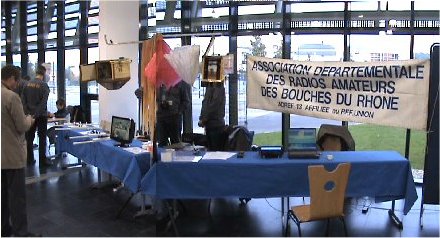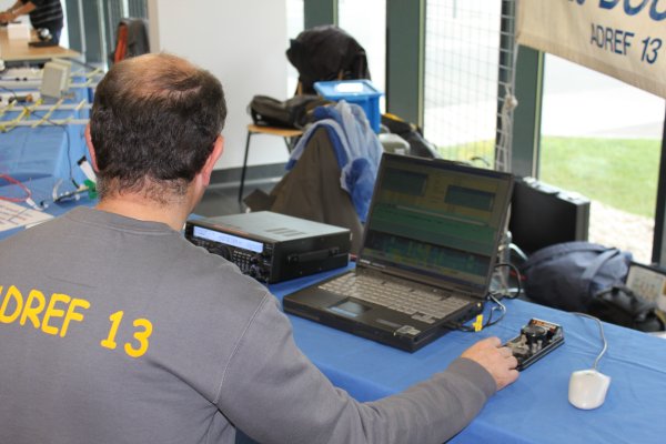 Le stand de l’ADREF 13 se composait comme suit : une partie radiogoniométrie, une partie Boufigo avec vidéo de nos lâchers et une partie radio et démonstration des modes numériques.