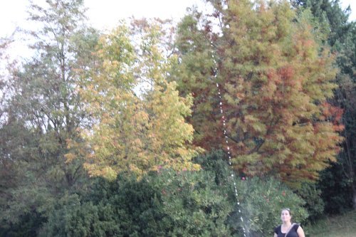 Dans le parc toujours, une autre activité très appréciée : les fusées à eau dont on voit ici la trainée d’eau après un décollage.