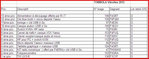 Les lots qui n’ont pas été retirés au congrès seront disponibles au RC F6KRD à Marseille pendant deux mois. Passé ce délai, ces lots seront remis en jeu l’année prochaine …