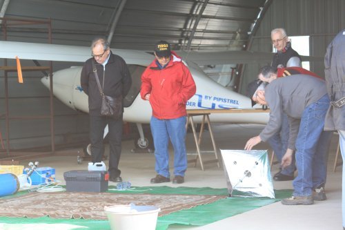 C’est à l’abri dans notre hangar gentillement prêté par Marc F1OVL, que la chaine de vol se constitue.