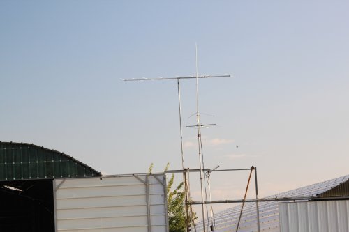 Voilà qui est fait, un beau groupement d’aériens … une 9 elts pour l’APRS, une bi-bande pour la com, une 5 elts pour une deuxième réception APRS, une loop yagi pour l’ATV etc …