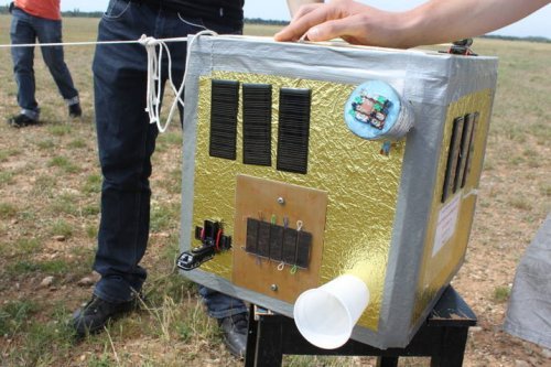 Un beau bébé qu’avaient confectionné les élèves avec pleins d’expériences comme ces LED multicolores (visibles en haut à droite de la nacelle) qui devaient réagir aux différentes couches de l’atmosphère …