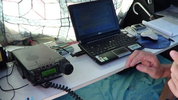 Confortablement installé dans son véhicule transformé pour l’occasion en shack portable, F4AQG s’active au micro !