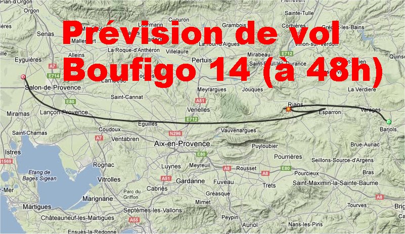 Vu la météo au sol de samedi et vu la prévision de vol, nous vous confirmons que la Boufigo 14 sera bien lâchée depuis Eyguières ce
