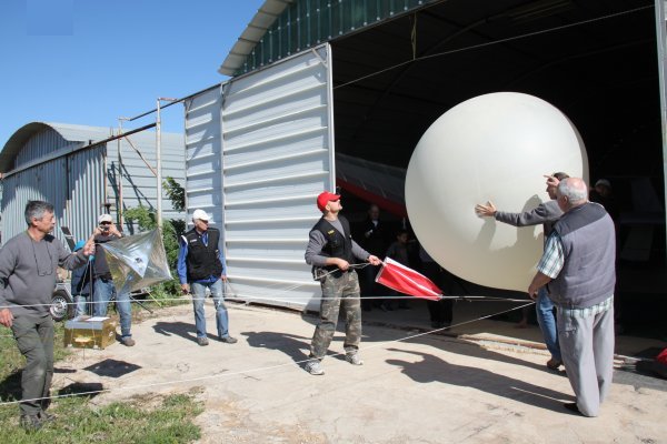 9h50, il est temps de sortir la chaine de vol constituée du ballon – parachute – réflecteur radar – nacelle.