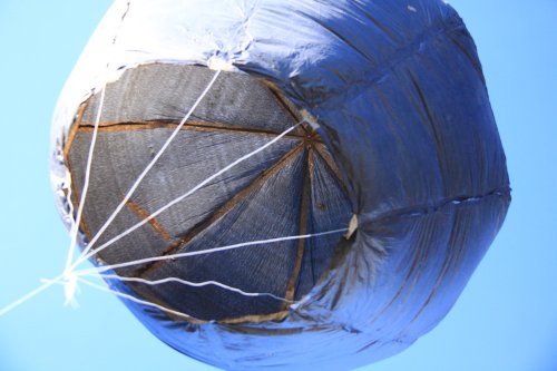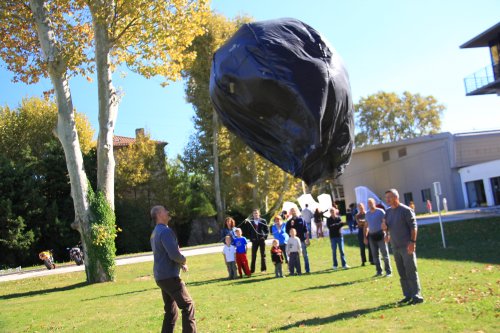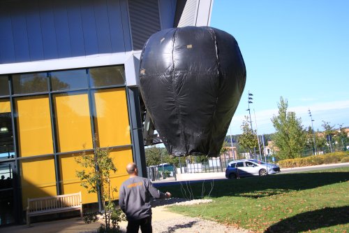 Le vent qui était présent par vague ne nous a pas permis de présenter des longs vols. On peut voir ici le ballon qui perd sa forme à cause du vent. Dans ces conditions, pas possible d’accrocher la nacelle vidéo ! Dommage, ce sera pour une prochaine fois.