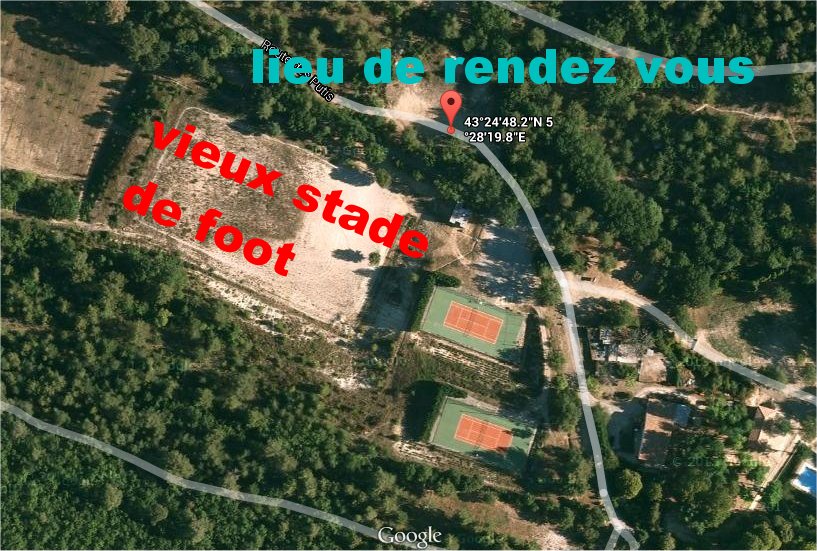 L’heure de rendez vous est entre 9h et 9h30 en 43°24’48.2″N 5°28’19.8″E ou bien 43.413388, 5.472152 au domaine des Marres près de Simiane Collongues (13)