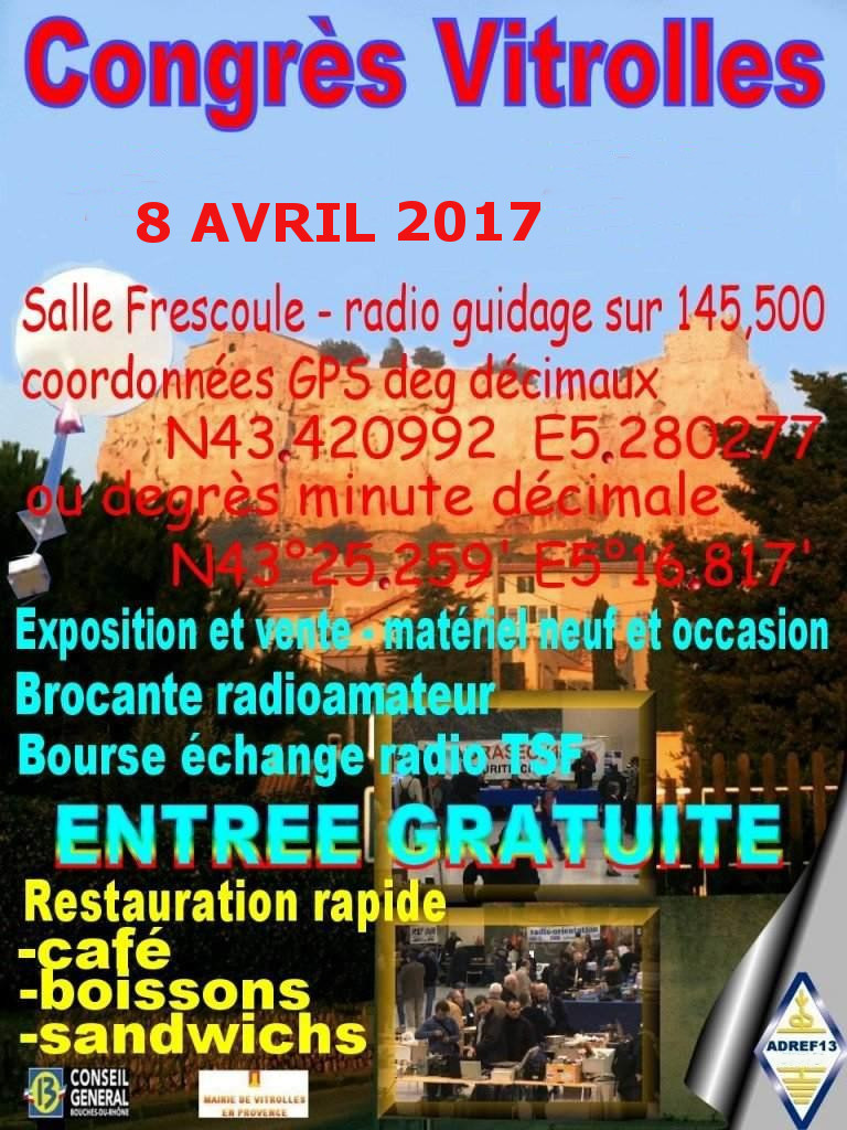 L’équipe DSTAR de l’ADREF13 sera également présent avec un stand et du matériel. Vous saurez tout sur le nouveau relais situé à Marseille Nord, il est maintenant opérationnel et répond au doux indicatif de F5ZLB .