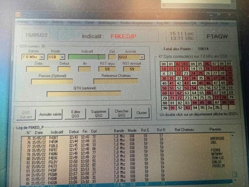 137 QSO au total, 61 départements contactés. 12 Qso avec le 13